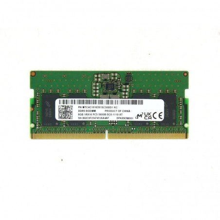 El Micron MTC4C10163S1SC56BD1 es un módulo de memoria RAM DDR5 de 8 GB, diseñado para portátiles y sistemas compactos. Con una velocidad de hasta 5600 MHz, ofrece un rendimiento superior y mayor eficiencia energética en comparación con generaciones anteriores.