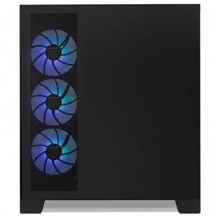 - REFRIGERACIÓN SUPERIOR. Hummer Glock viene con cuatro ventiladores ARGB Easy Link Lite instalados, estos ventiladores incluyen una nueva tecnología que permite una conexión entre ellos rápida, sin necesidad de cables, manteniendo de esta manera el interior de la caja limpio y facilitando el montaje. Pudiendo integrar hasta un total de diez, logrando un gran caudal de aire. Mantén tus componentes fríos, rindiendo de la manera más eficiente. Esta caja Nox cuenta con amplias opciones de refrigeración con las que podrás instalar hasta diez ventiladores de 120 mm, uno en la parte trasera, tres en la zona lateral, tres en zona superior y tres en la zona inferior. Crea la iluminación perfecta para tu setup.