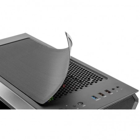 Desde su panel superior podrás controlar el color de sus ventiladores además de conectar hasta 3 USB ya que posee dos conexiones 2.0. y una 3.0 de alta velocidad, y las conexiones de audio.