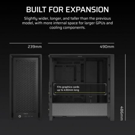 - ESPACIO PARA TODO. Asegúrese de que su equipo tenga un excelente flujo de aire con un cuidadoso enrutamiento de los cables y compatibilidad con las placas base y tarjetas gráficas más recientes.
