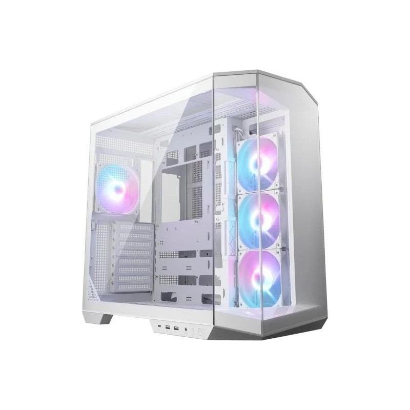 El MAG PANO 100R PZ WHITE viene con un panel de vidrio templado de 270 grados y es compatible con dos tamaños diferentes de placas base Back-connect, lo que aumenta la limpieza de la construcción de su PC mientras mejora su estética y organización general. MAG PANO 100R PZ WHITE ofrece una espectacular iluminación ambiental con 3 ventiladores de admisión ARGB PWM de hoja inversa de 120 mm y 1 ventilador de escape ARGB PWM de 120 mm preinstalado. Esta funda de PC ofrece un soporte de instalación vertical para tarjetas gráficas.