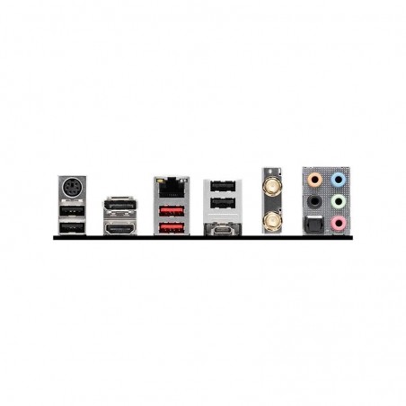 Panel Trasero: Dispone de 1 puerto HDMI 2.1, 1 DisplayPort 1.4, 1 puerto Ethernet 2.5 Gigabit, 4 puertos USB 2.0, 2 puertos USB 3.2 Gen 2, y 1 puerto USB tipo C 3.2 Gen 2.