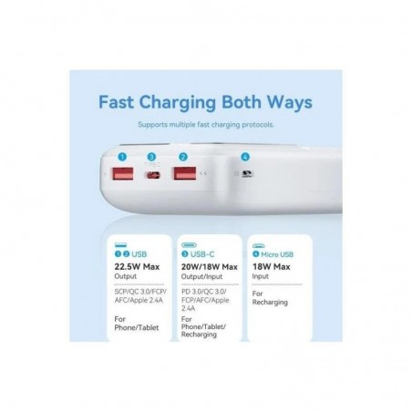 20000mAh Power Bank Vention FHLW0 (Micro-USB + USB-C + USB-A + USB-A) 22.5W Blanco LED Display