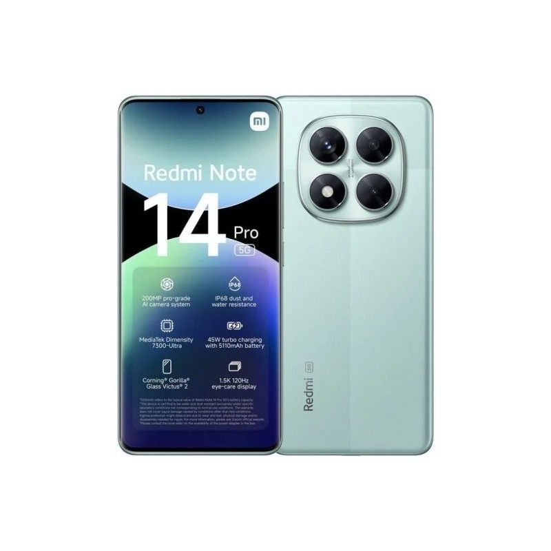 - Resistencia IP68 al polvo y al agua. El Redmi Note 14 Pro 5G está equipado con protección IP68* de gama alta, lo que significa que se ha probado para soportar hasta 30 minutos de inmersión en hasta 1,5 metros de agua