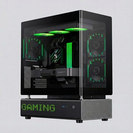 Diseño premium con panel lateral para presumir de hardware y una estética cuidada al detalle.